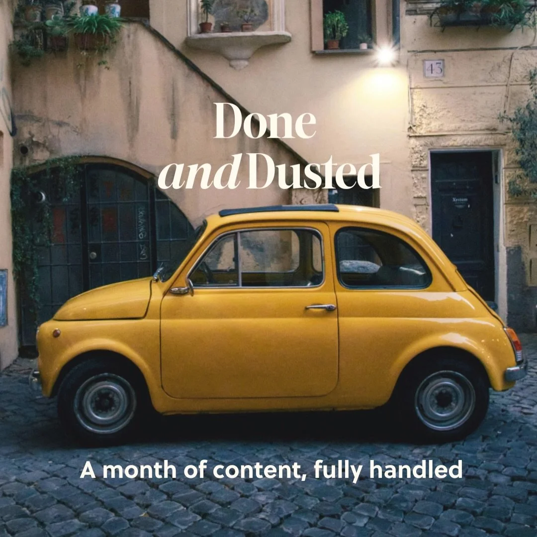 Done & Dusted is a 6-week content setup that starts with your voice and ends with your content handled. Part done-with-you, part done-for-you. We start with your story and strategy, then your content runs quietly in the background.